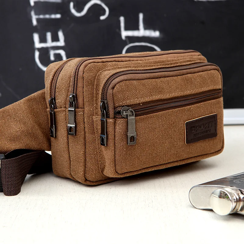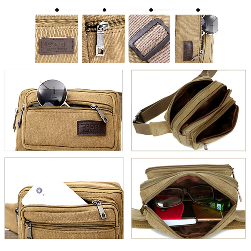 Холщовая Сумка на ремне для мужчин, многофункциональная маленькая квадратная сумочка на молнии, в стиле ретро, с клапаном, для спорта на открытом воздухе, портмоне для мелочей