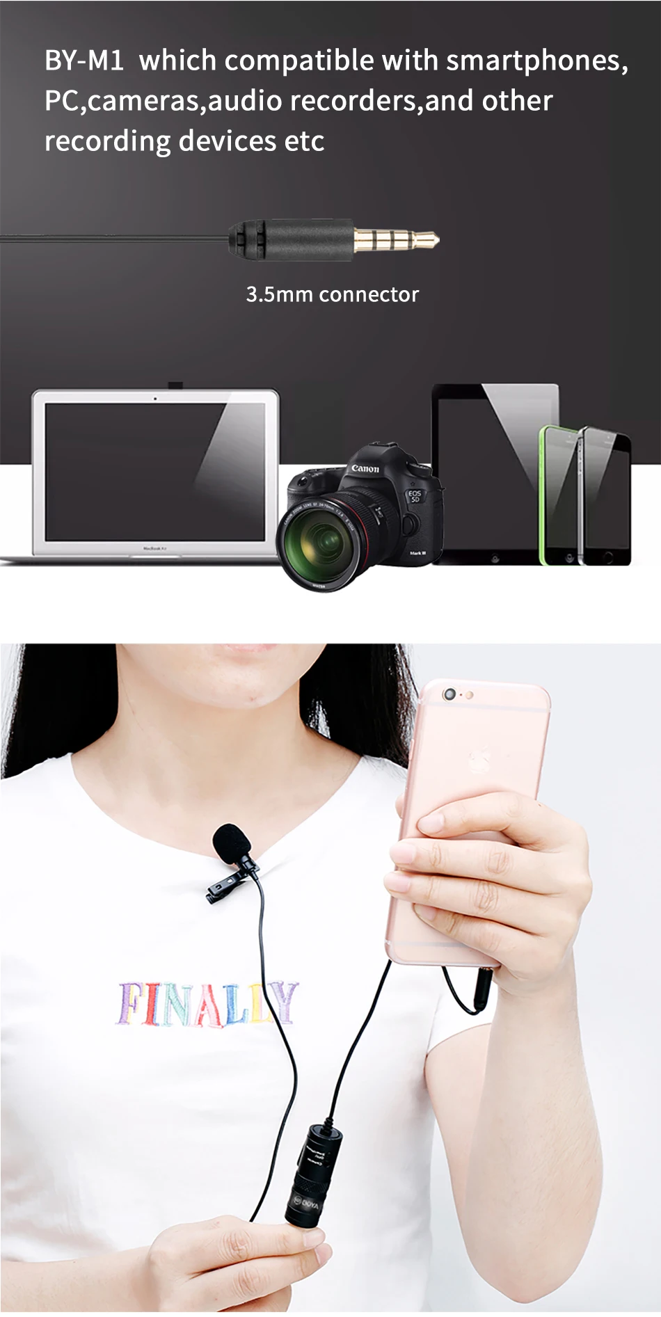 Оригинальный петличный микрофон BOYA BY-M1 для записи, видеооборудование для Canon, DSLR, видеокамер, Youtube, ПК, iPhone 13 Pro Max