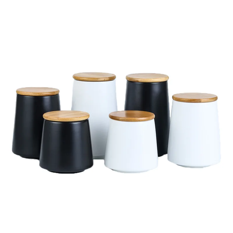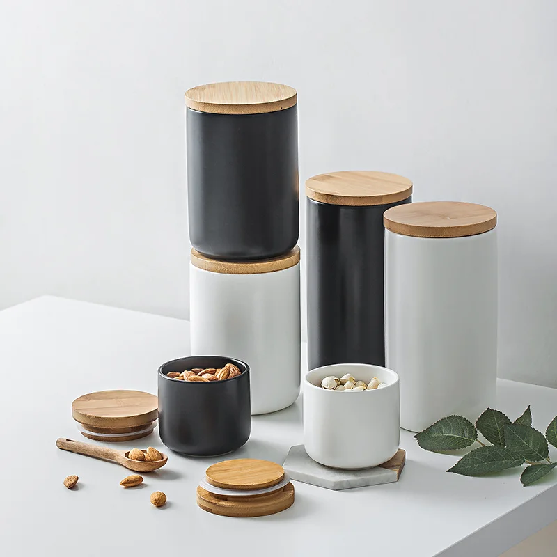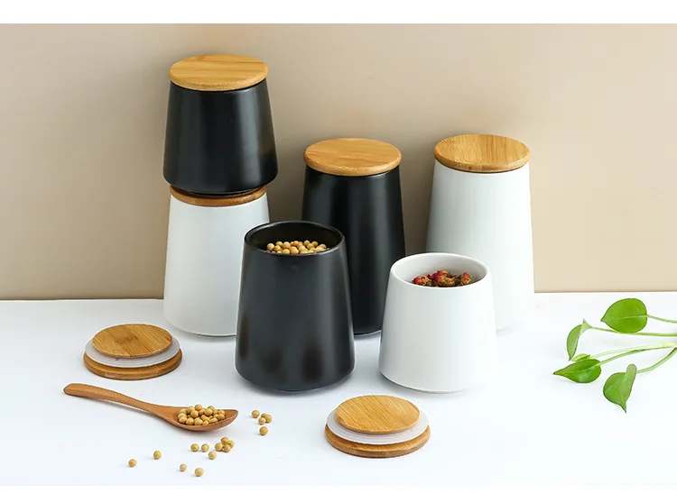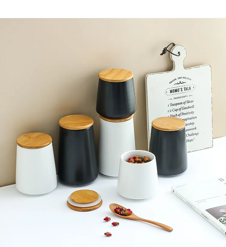 Керамическая емкость с деревянной крышкой для хранения в кухне, банки для хранения различных продуктов, банки для кофе, зерен, чая, молока, порошка, сахара, банки для хранения