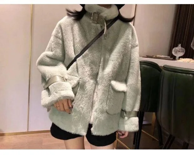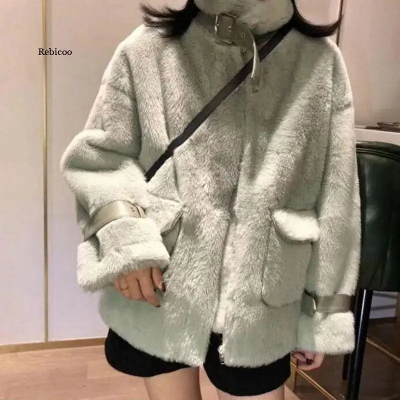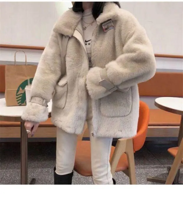 Пальто из искусственного меха, Женская Толстая зимняя повседневная куртка, пальто из кроличьего меха, теплая пушистая Свободная верхняя одежда, модная женская парка