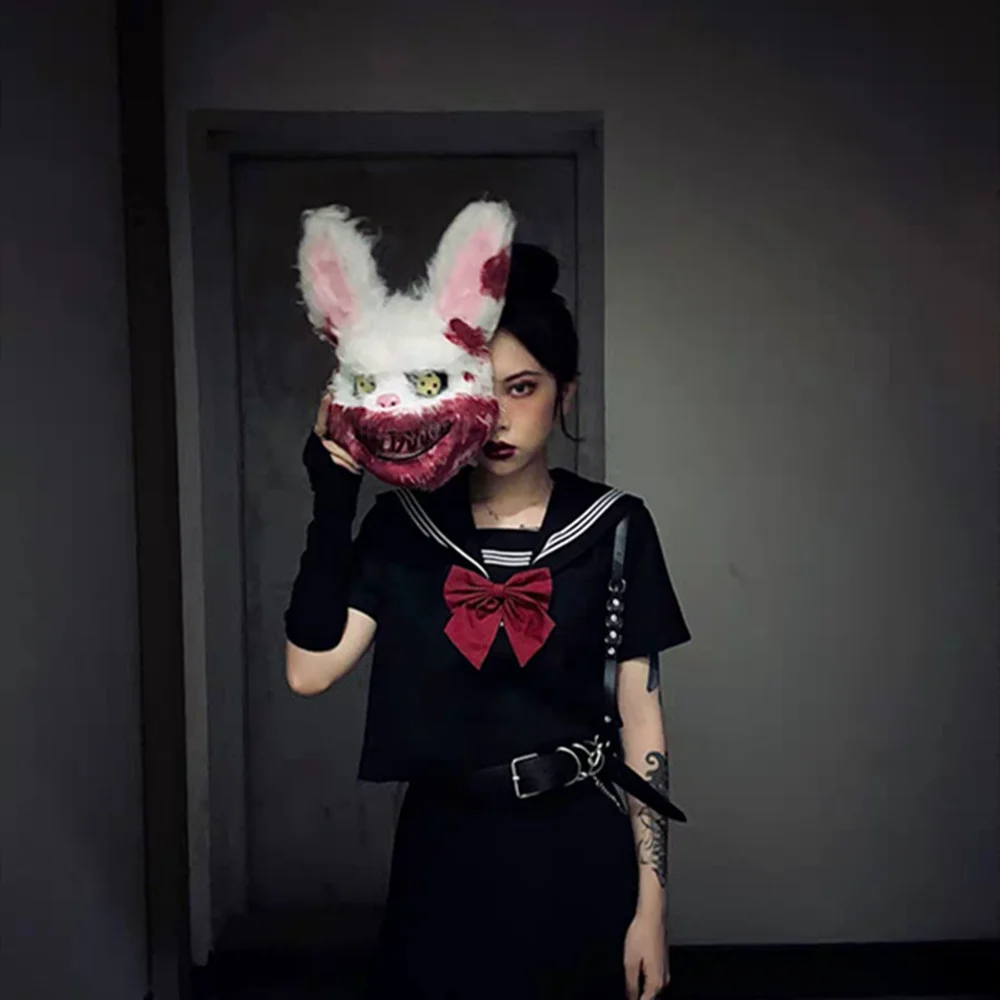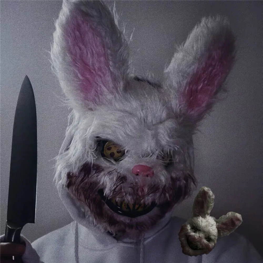 Маска кровяного кролика на Хэллоуин, плюшевая, жуткая, милая, убийца животных, страшвечерние для взрослых, косплей, головной убор, страшная улыбка, медведь, панда, игрушка в подарок