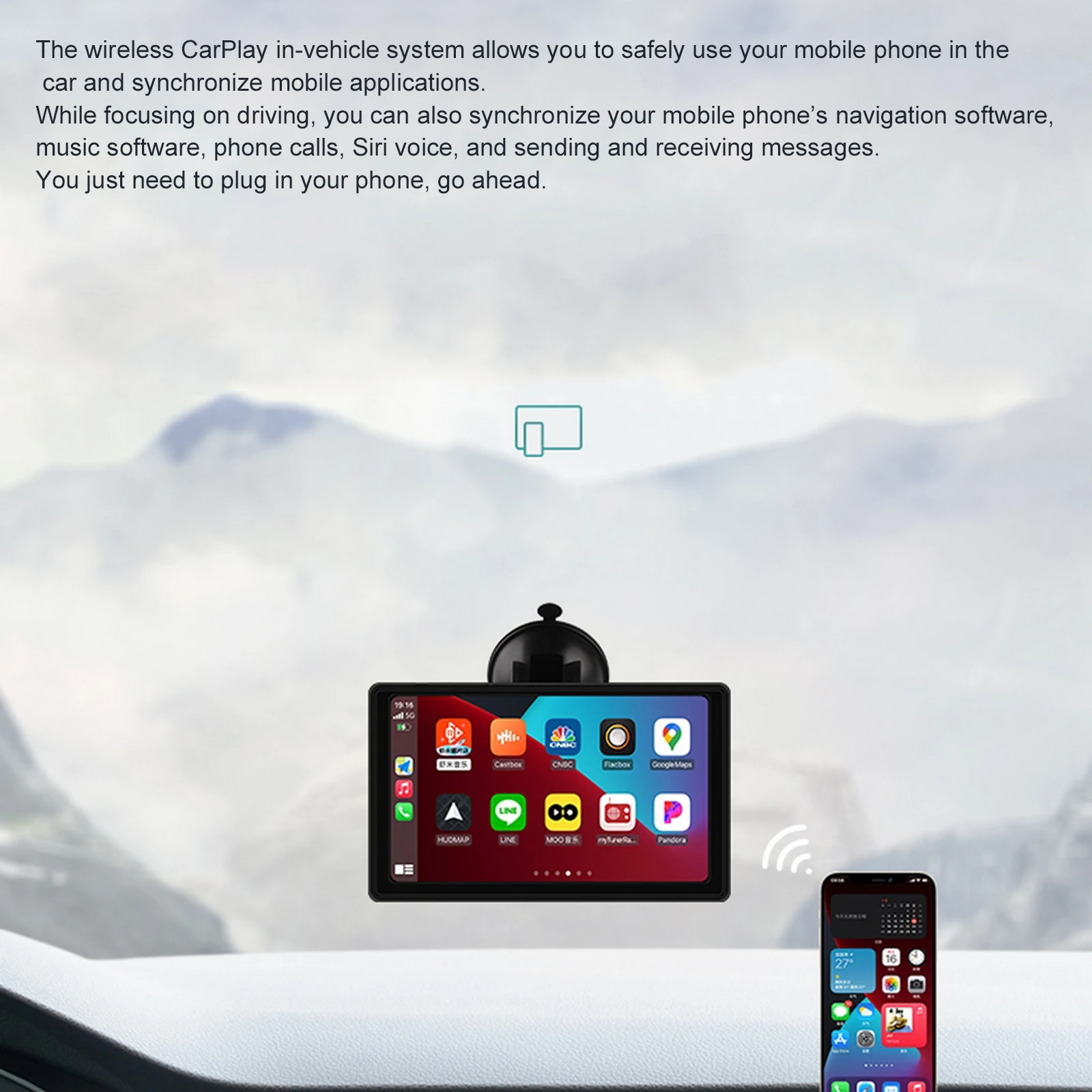 7 дюймов сенсорный экран Экран автомобиля Портативный Беспроводной Carplay Беспроводной Android Авто Беспроводной зеркало GPS навигации Смарт Экран
