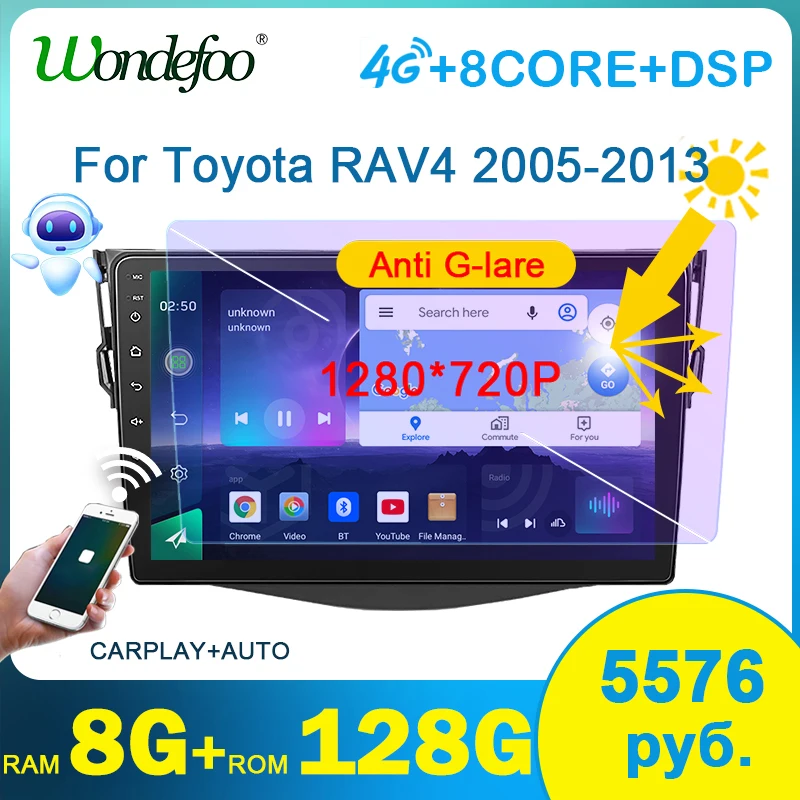 Автомагнитола wondefoo для Toyota RAV4 RAV 4 XA30 2005-2013, 2 din, Android, Авторадио, мультимедийный плеер, навигация для CarPlay, GPS, 2din