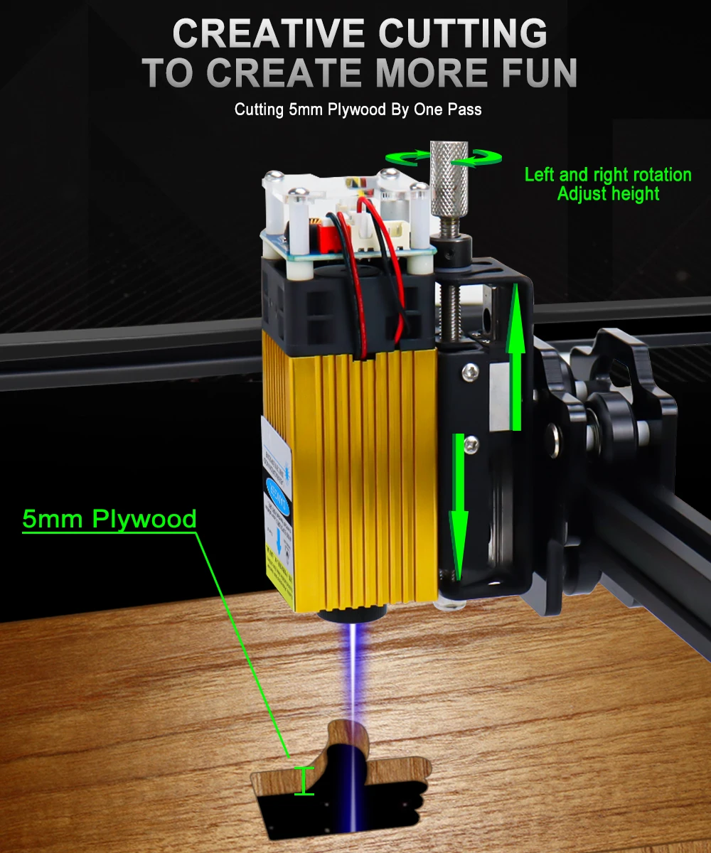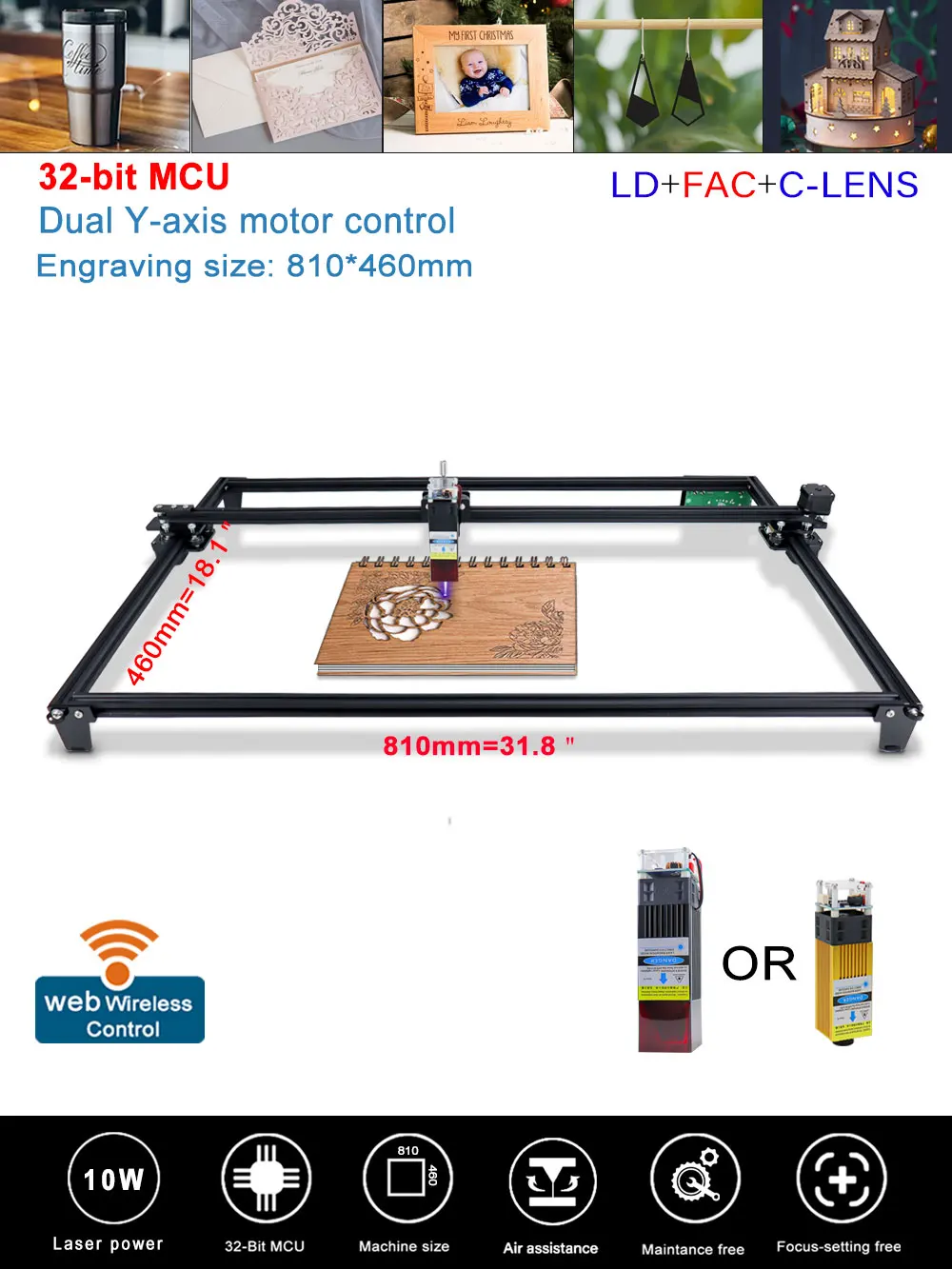 Конструкция из алюминиевого сплава и акрила делает машину более прочной и улучшает точность гравировки. Вся конструкция предназначена для быстрой сборки, и сборка обычно может быть завершена в течение 10-20 минут.