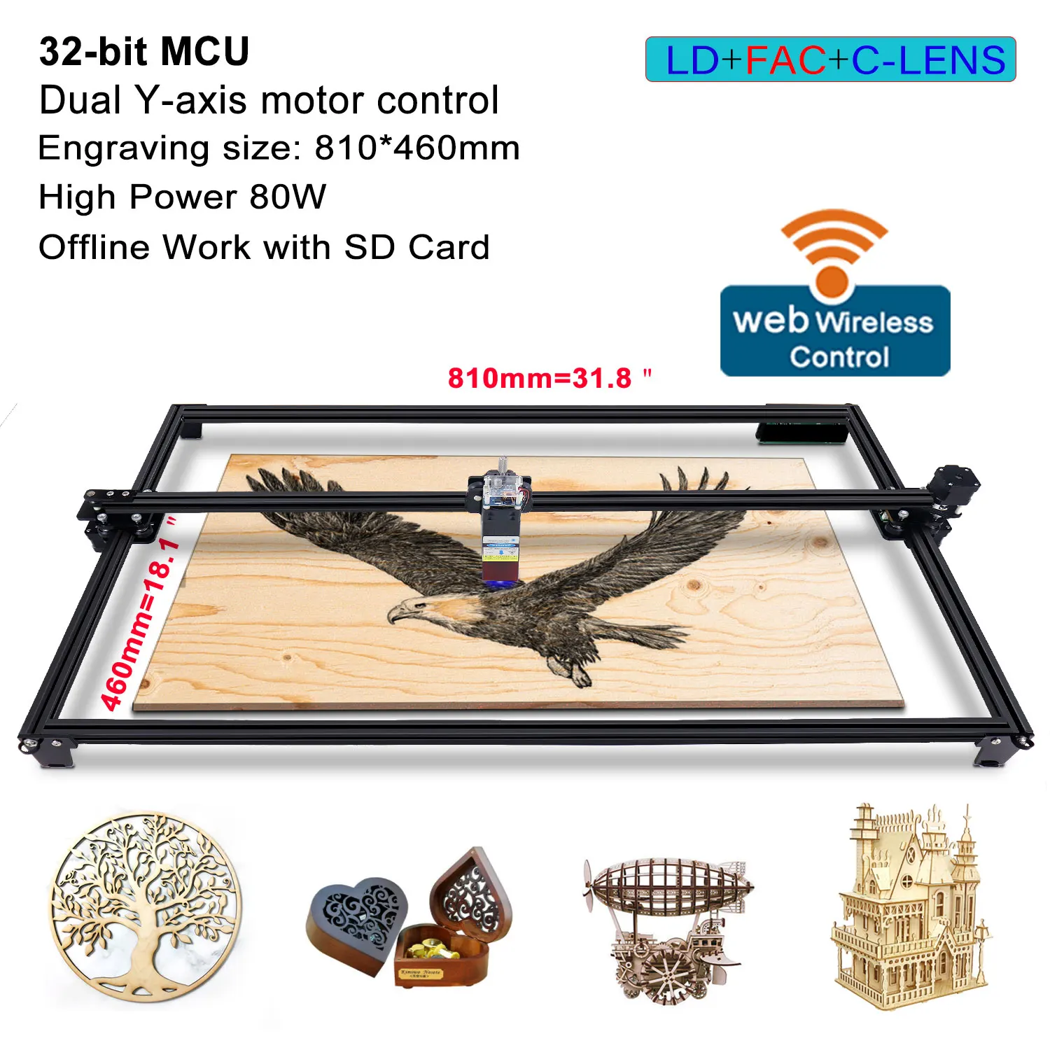 Лазерный гравер 81x46 см, 80 Вт Лазерный Гравировальный режущий ста...