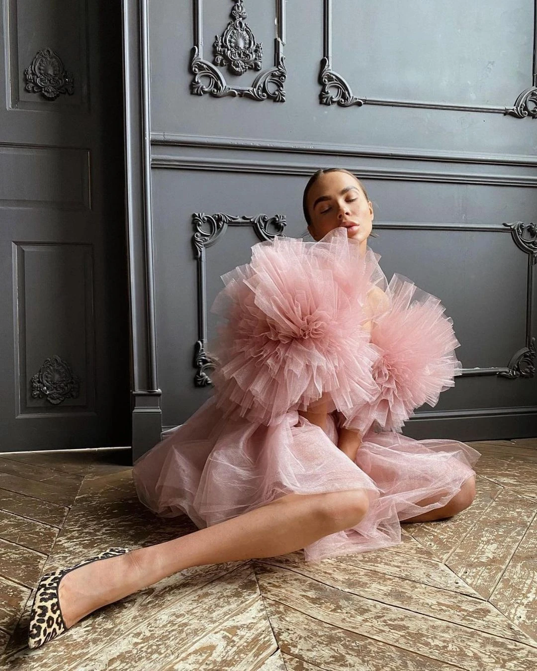 Летние розовые короткие тюлевые платья Пышное с оборками, женские п...