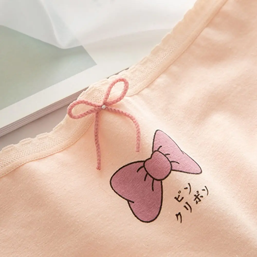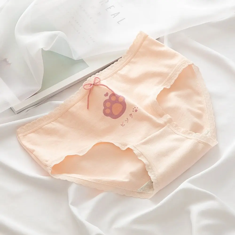 Трусики женские с бантом и когтями в японском стиле, студенческие Трусы со средней талией, хлопковые кружевные с милым принтом в виде кошек, с промежностью
