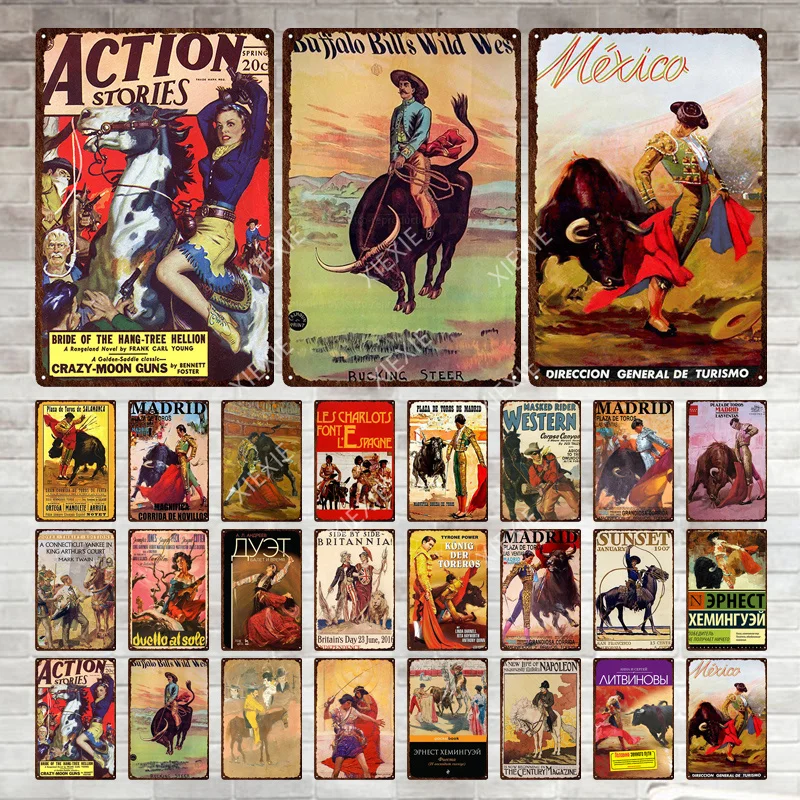 Ретро арт Bullfight постер, винтажные металлические картины, Женский клуб, бар, семейная комната, настенное украшение, тарелка, подарки