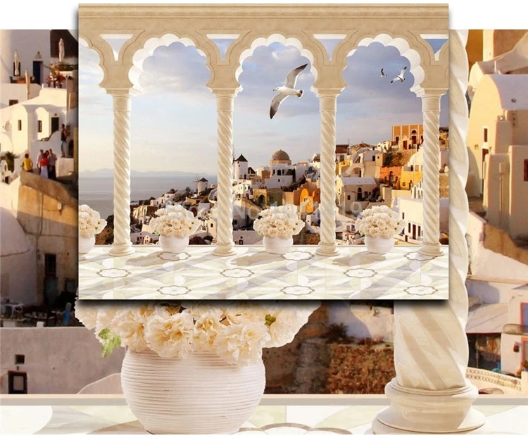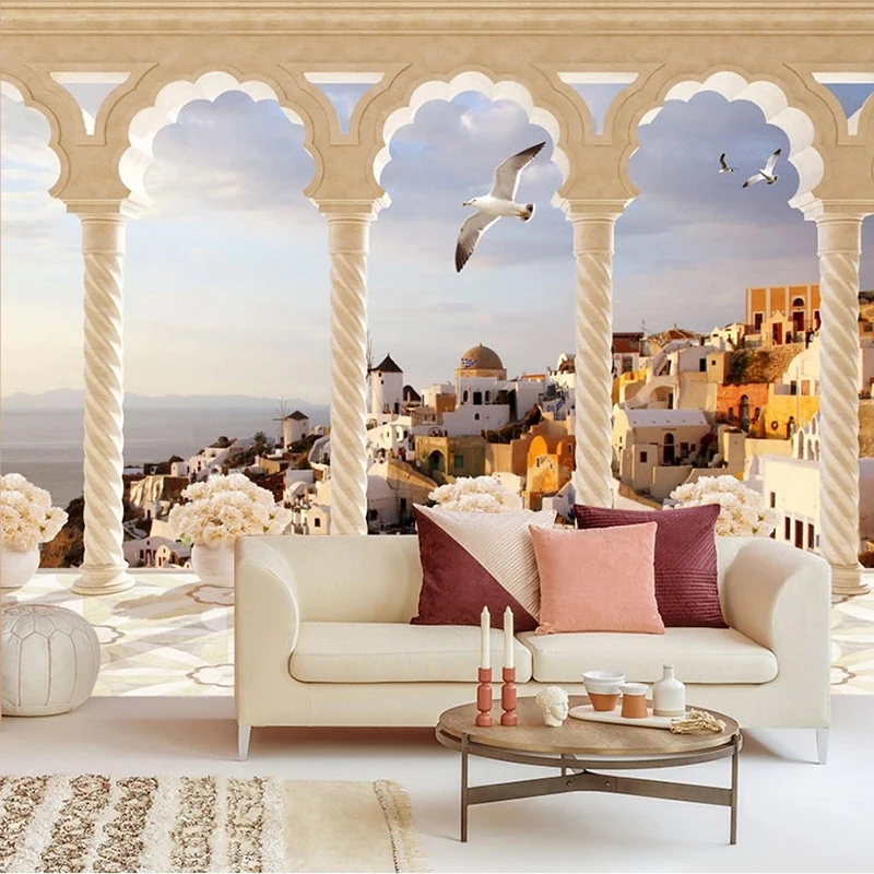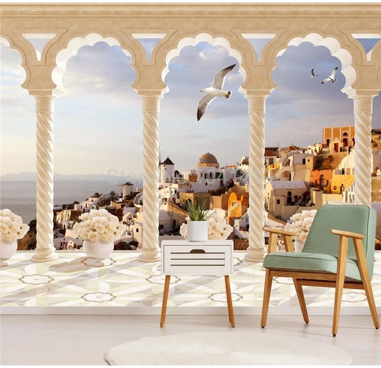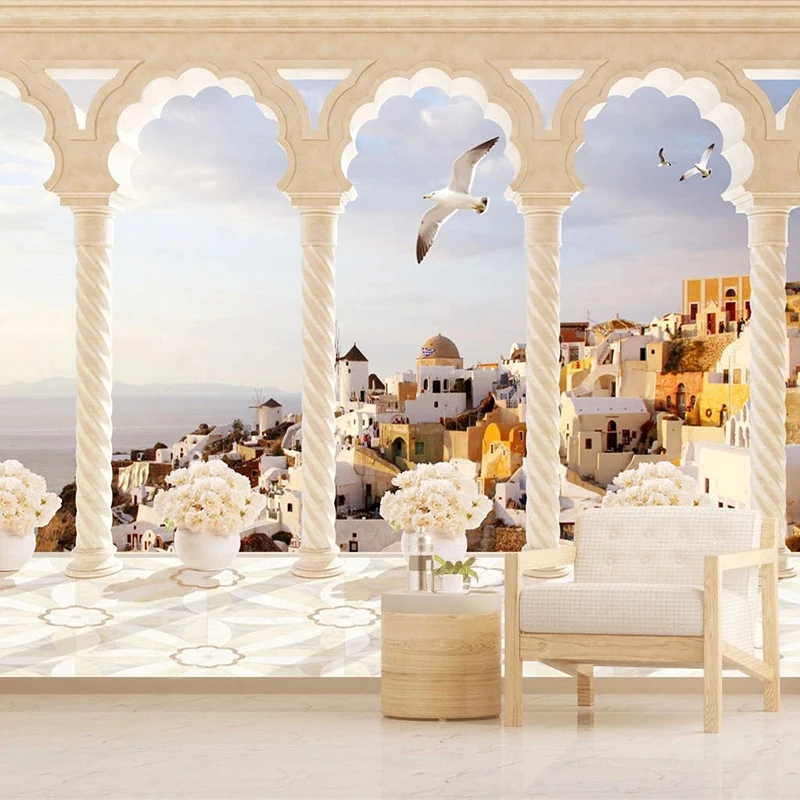 Пользовательские 3D настенная Современная римская колонна подоконник вид на море фото обои для гостиной отеля фоновая стена Papel де Parede