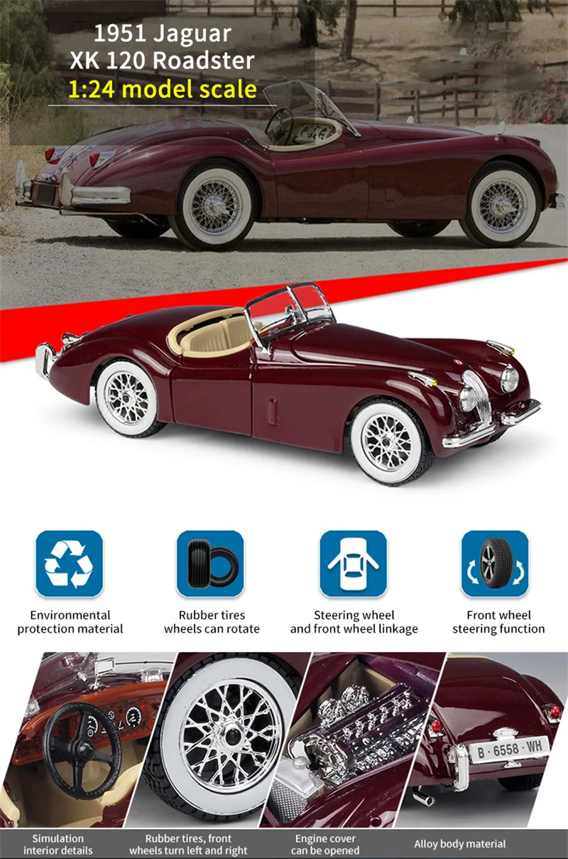 1:24 Jaguar 1951 XK120 родстерискусственный симулятор из металлического сплава литая искусственная игрушка для детей подарок на день рождения Коллекция