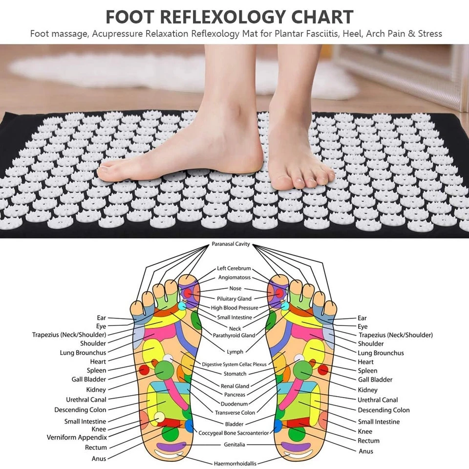 2. Акупрессуровый коврик и подушка снимают стресс, боли, боли и мышечное напряжение, облегчение боли в шее и увеличивает кровообращение. Стимулирует точки в китайской традиционной медицине и активирует собственное производство двух веществ, помогает расслабиться.