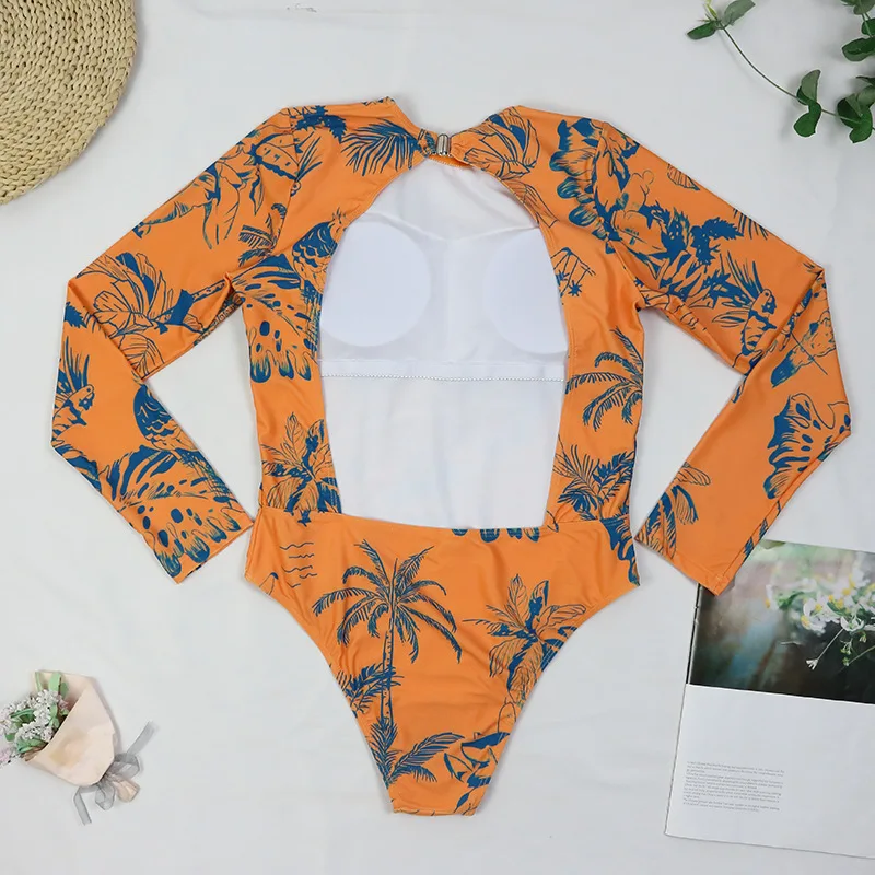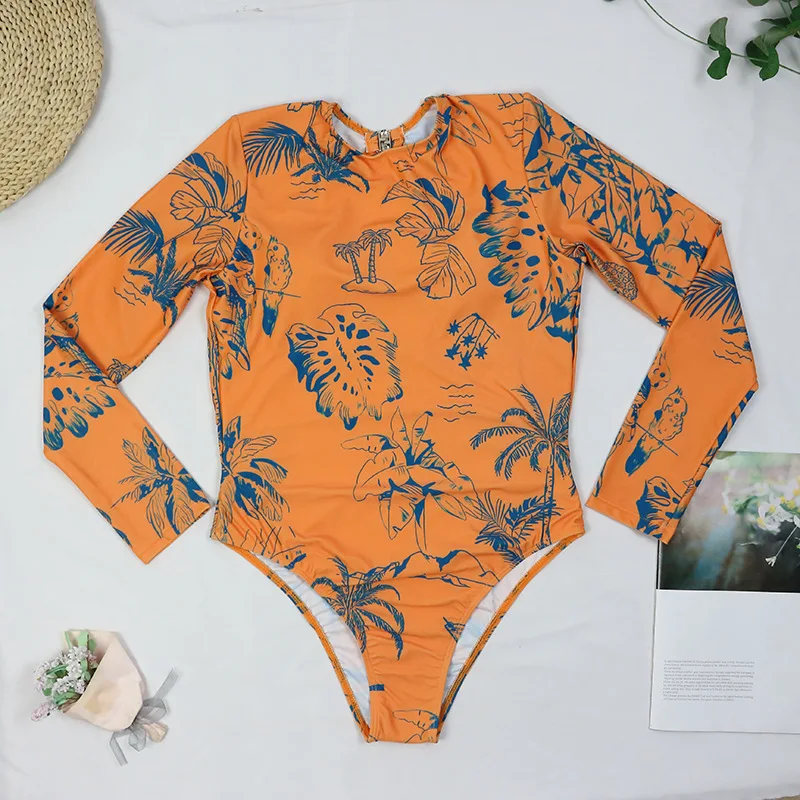Цельный купальник, новинка 2022, индивидуальная абстрактная печать, руашгард, стиль, серия, с длинными рукавами, купальник, женский купальный костюм, пляжная одежда