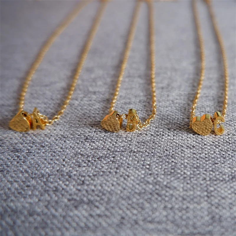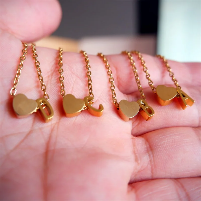 Модное ожерелье с изящными инициалами крошечного сердца, Золотое колье с буквой и именем, ожерелья для женщин, кулон из нержавеющей стали, ювелирные изделия, подарки