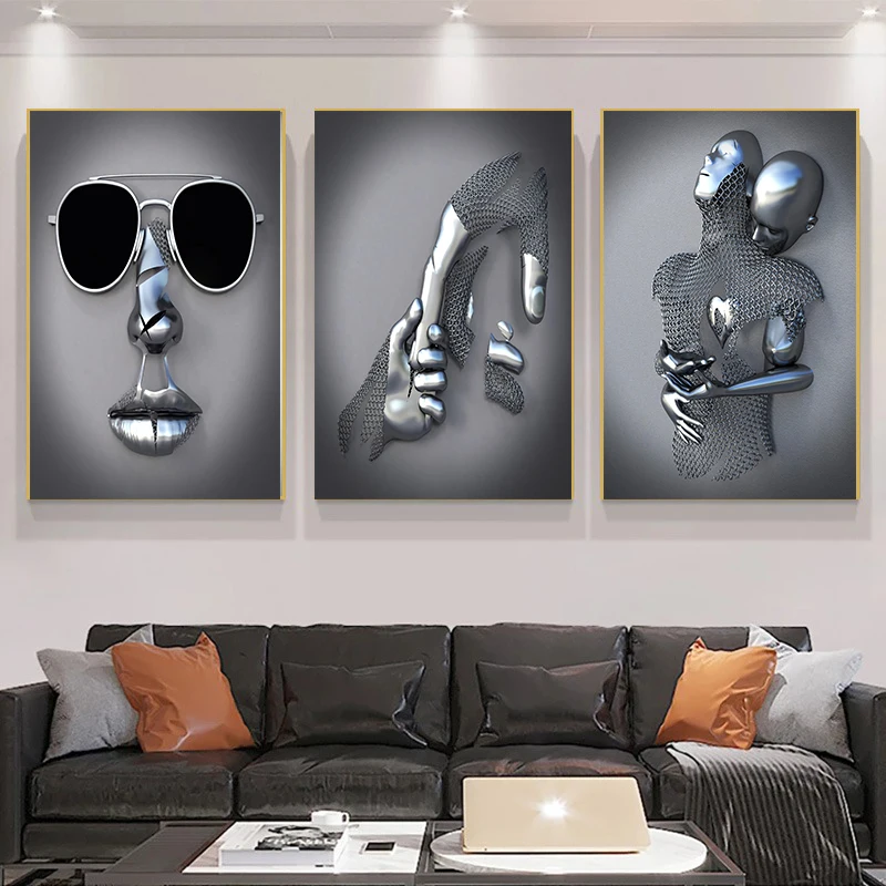 Металлическая фигурка статуя Искусство Холст 3D живопись романтические абстрактные постеры и принты настенные картины современная гостиная рождественские подарки