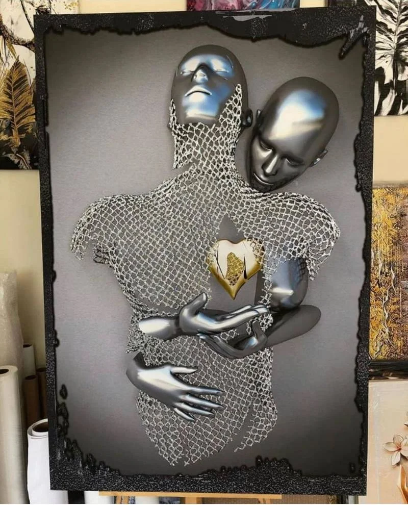 Черно-серебристая Картина на холсте с 3d эффектом для влюбленных па...