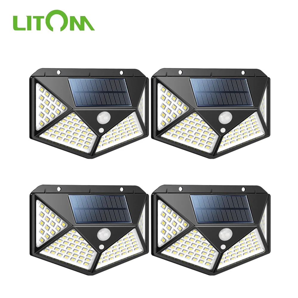 LITOM 1 шт. 4 шт. 6 шт. солнечный светильник s наружный 100 светодиодный супер яркий датчик движения светильник 270 ° Широкий угол беспроводной водонепроницаемый IP65 Настенный светильник s для передней двери двора гаража Палуба Путь крыльца
