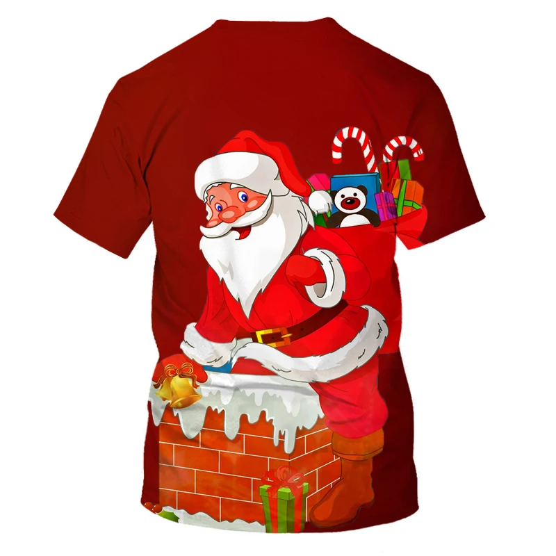 Новая мужская футболка с коротким рукавом и 3D-принтом, забавная футболка с Санта-Клаусом, рождественский подарок, детская одежда, одежда для родителей и детей