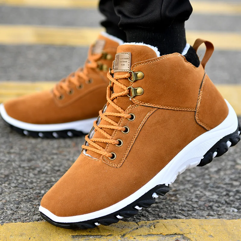 Мужские зимние ботинки сохраняют тепло, мужские удобные ботильоны, мужские кроссовки на шнуровке, уличные походные кроссовки, Рабочая обувь