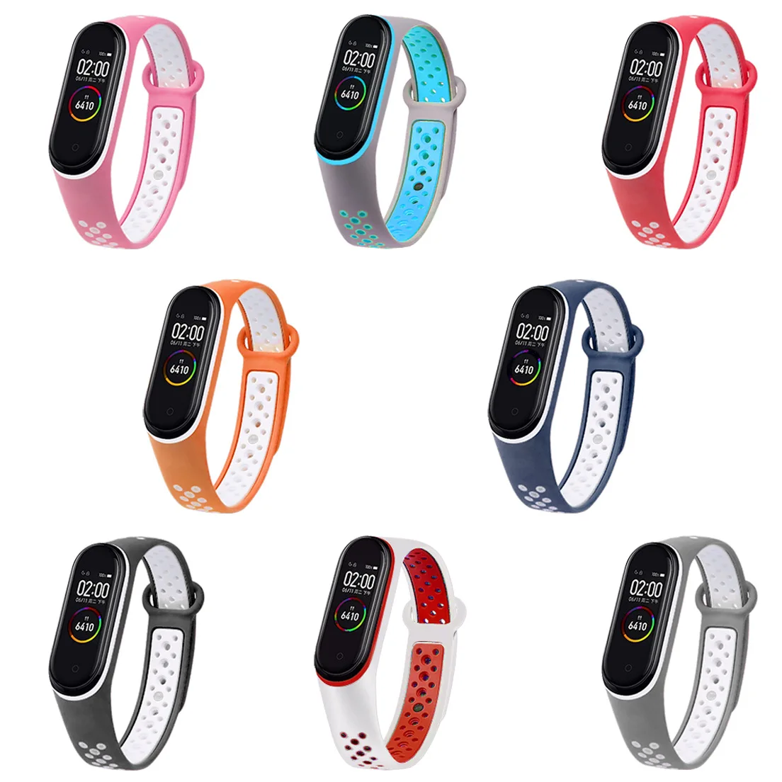 Дышащий ремешок для Xiaomi Mi Band 4 5 3 6, двухцветный спортивный ...