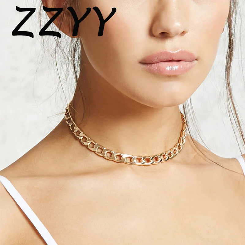 Ожерелье ZZYY в готическом стиле для женщин, кубинский чокер Майами, короткое ожерелье, простое минималистичное Золотистое Ожерелье, оптовая продажа, 2021