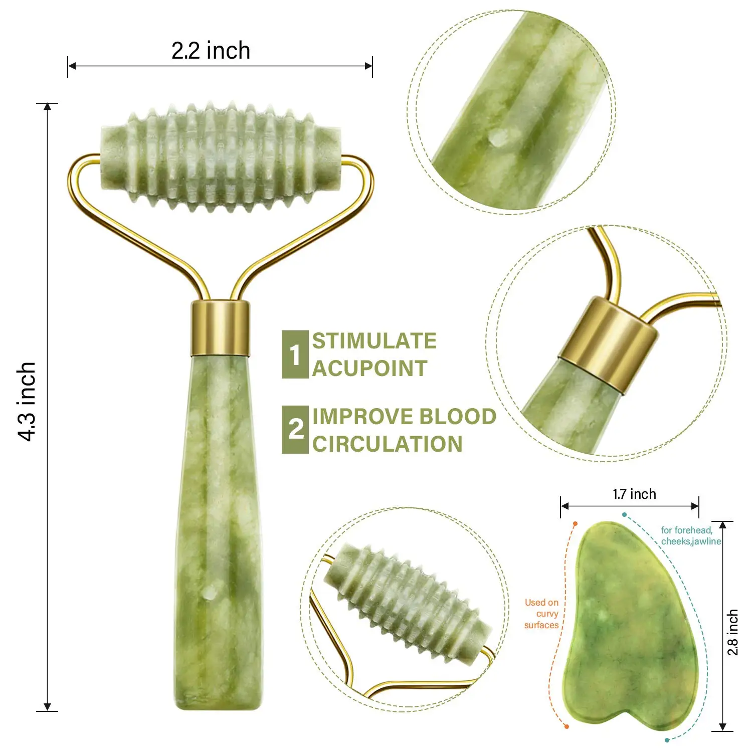 Роликовый массажер и доска Guasha-это натуральный нефрит, он изготовлен вручную, цвет иногда может немного отличаться