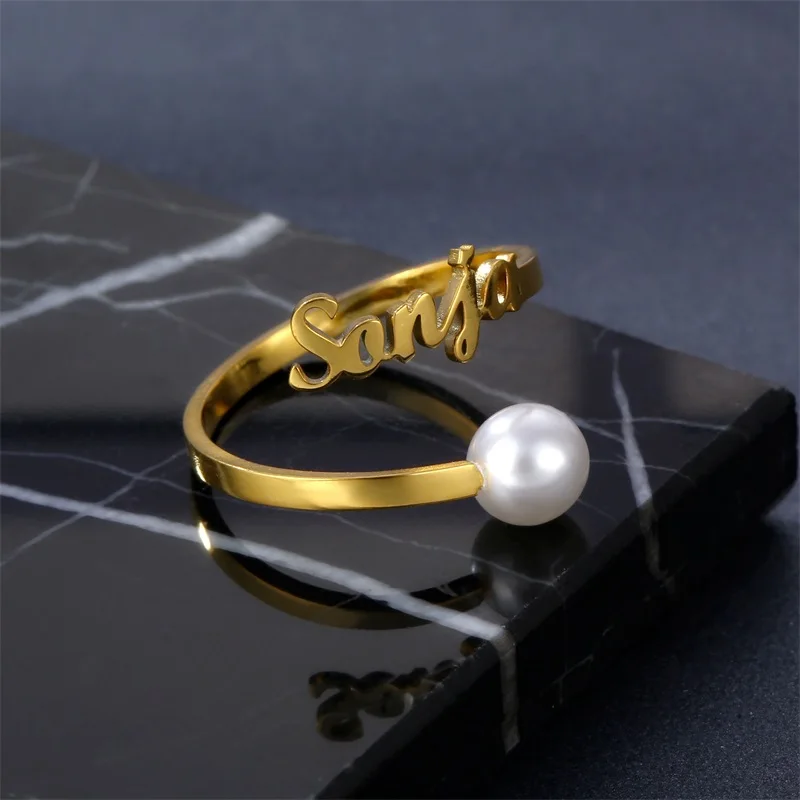 Кольца с регулируемым жемчугом и бабочкой, из нержавеющей стали