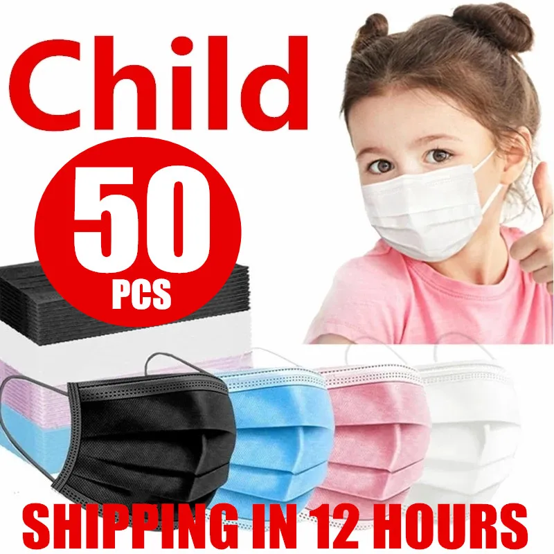 Быстрая доставка! Детская одноразовая маска для лица, черная 3-слой...