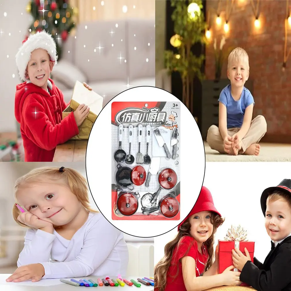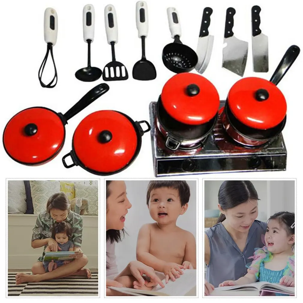 Детские Кухонные Игрушки для раннего развития имитация набор из 13 предметов красная посуда инструменты для приготовления пищи мини кухонные принадлежности