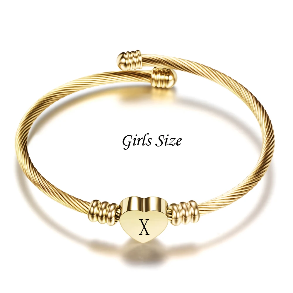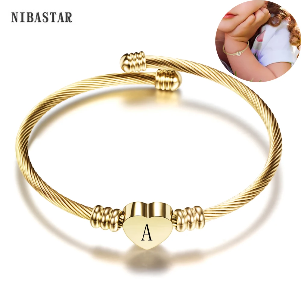 Милые детские браслеты с инициалом из нержавеющей стали, крошечные буквы, персонализированный подарок для ребенка, золотые браслеты с сердечками на заказ, подарки ручной работы
