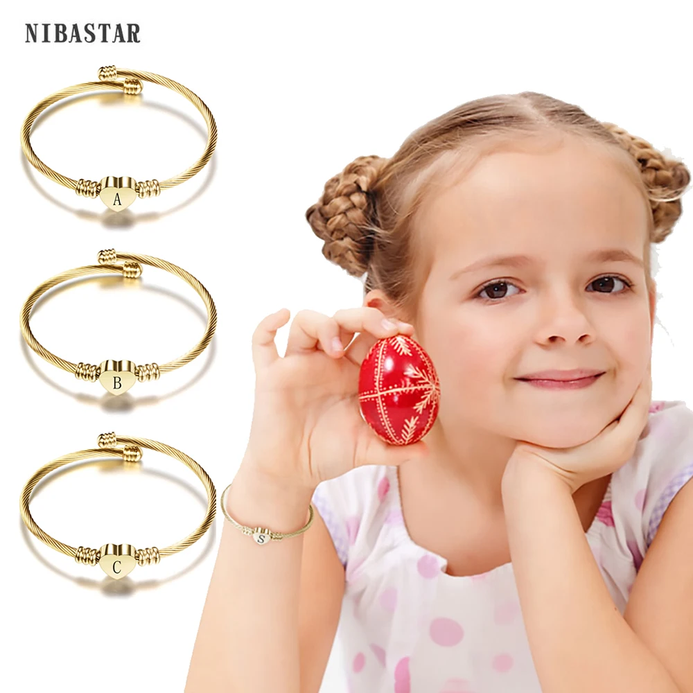 Милые дети начальные браслеты из нержавеющей стали крошечные буквы персонализированный подарок для ребенка Золотое сердце на заказ браслеты ручной работы подарки