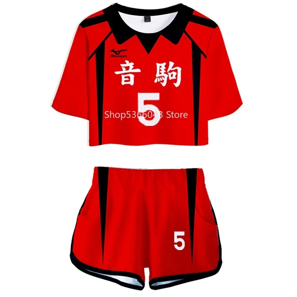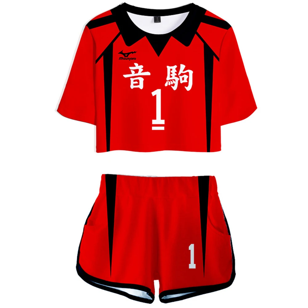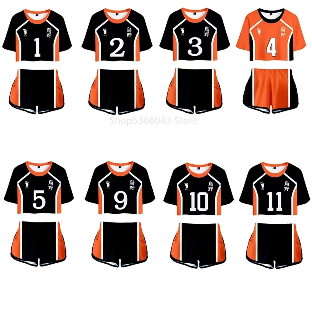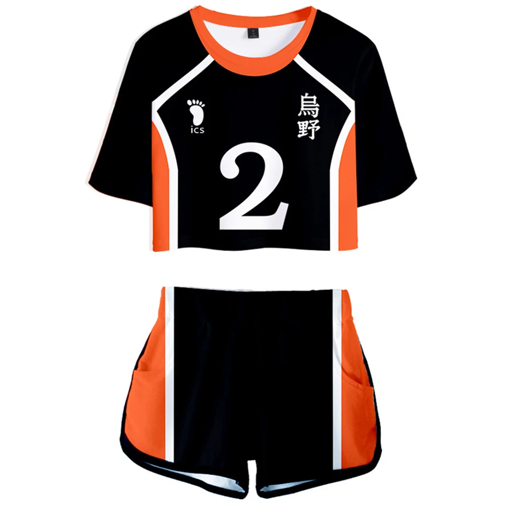 Женский костюм для косплея Аниме Haikyuu, костюм для соревнований, шорты с коротким рукавом и открытым пупком для чирлидинга, летние тонкие секции