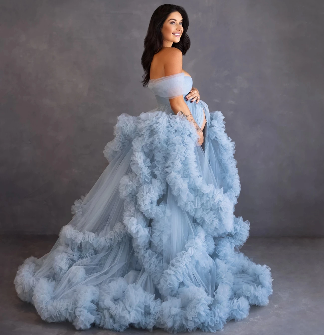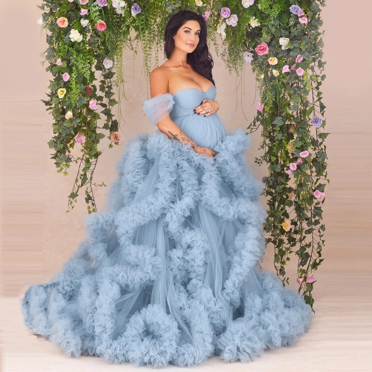 Пыльное синее Тюлевое платье для беременных для фотосъемки пышные х...