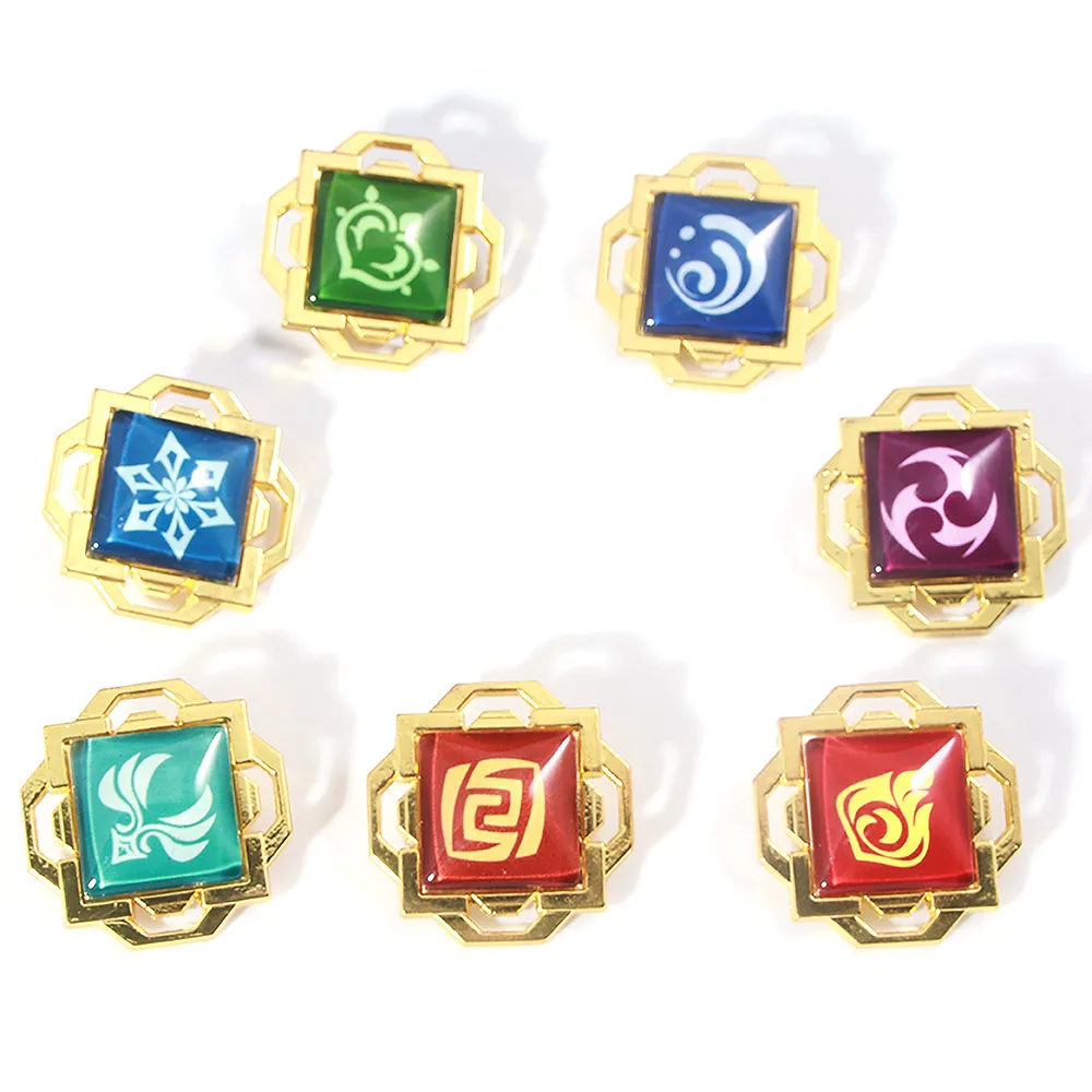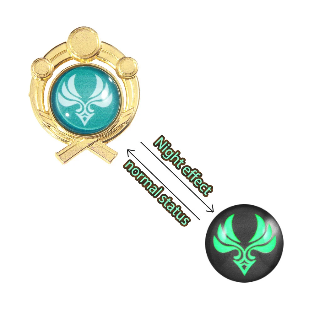 Брошь Genshin Impact Vision Seven Elements светящийся значок Inazuma Liyue металлическая стеклянная брошь подарок аксессуары для рюкзака