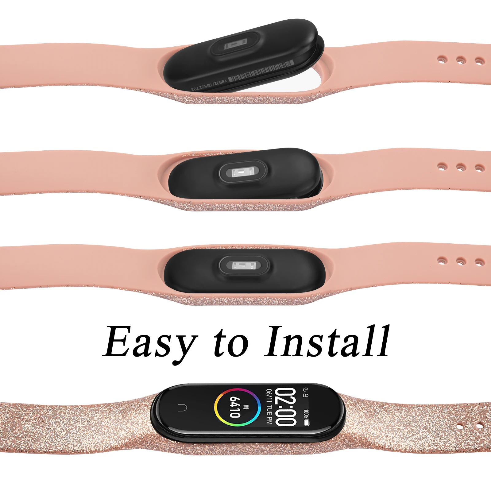 Элегантный Блестящий ремешок для Xiaomi Mi Band 4 3 силиконовый сменный Браслет с защитой от пота для Xiaomi Mi Band 5 6 спортивный браслет