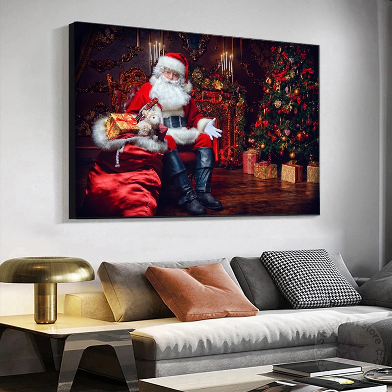 Современные рождественские Подарочные Картины Санта-Клауса, постеры и принты на холсте, Настенная картина для гостиной, художественный Декор на стену