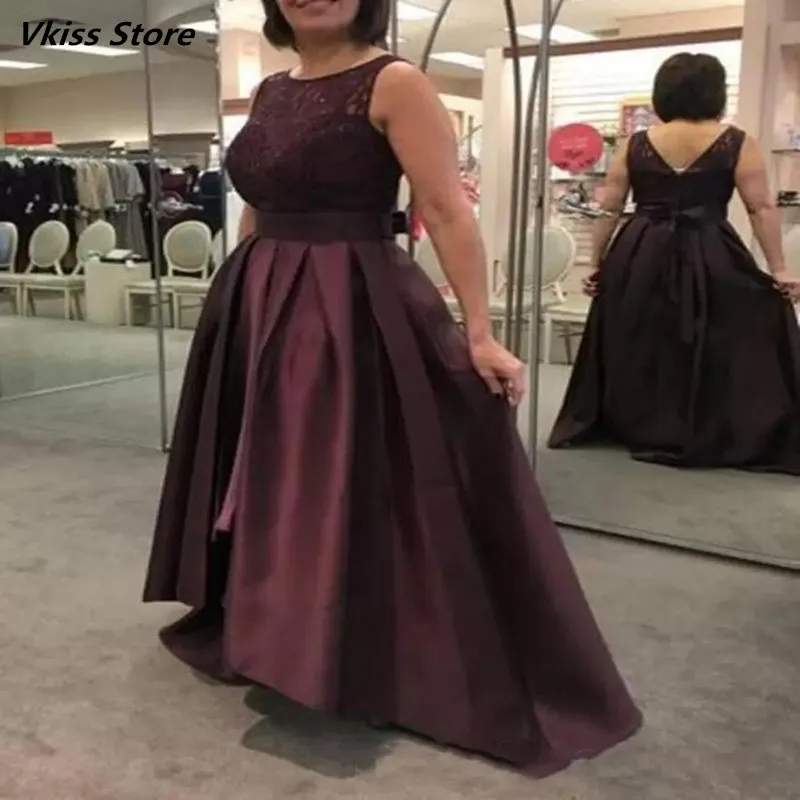 Атласное кружевное платье для матери невесты Vkiss, бальное платье А-силуэта без рукавов, на молнии