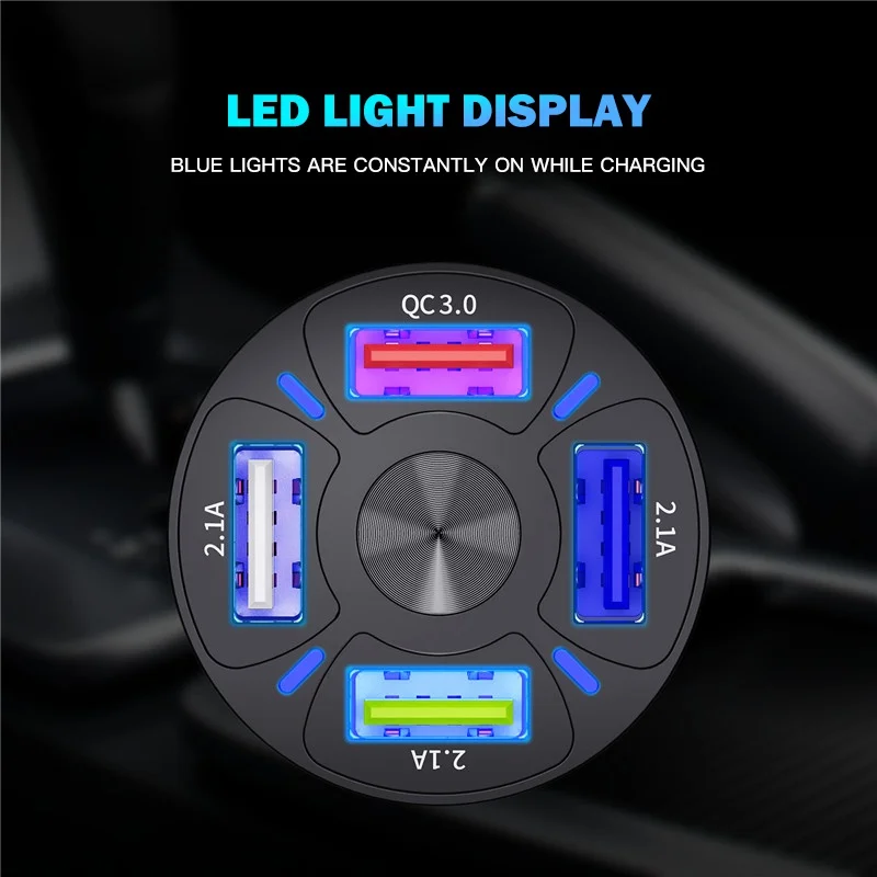 Автомобильное зарядное устройство с 4 USB-портами для прикуривателя, 48 Вт