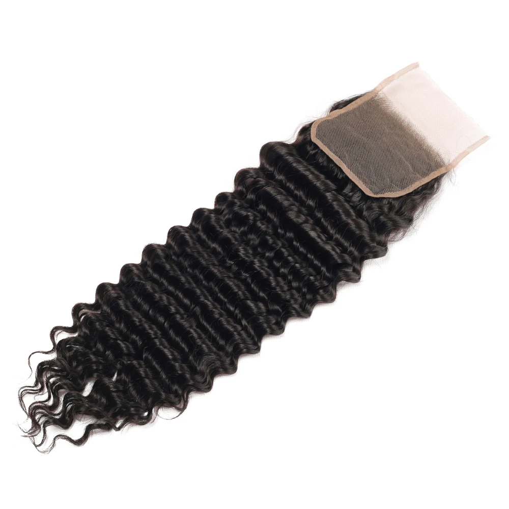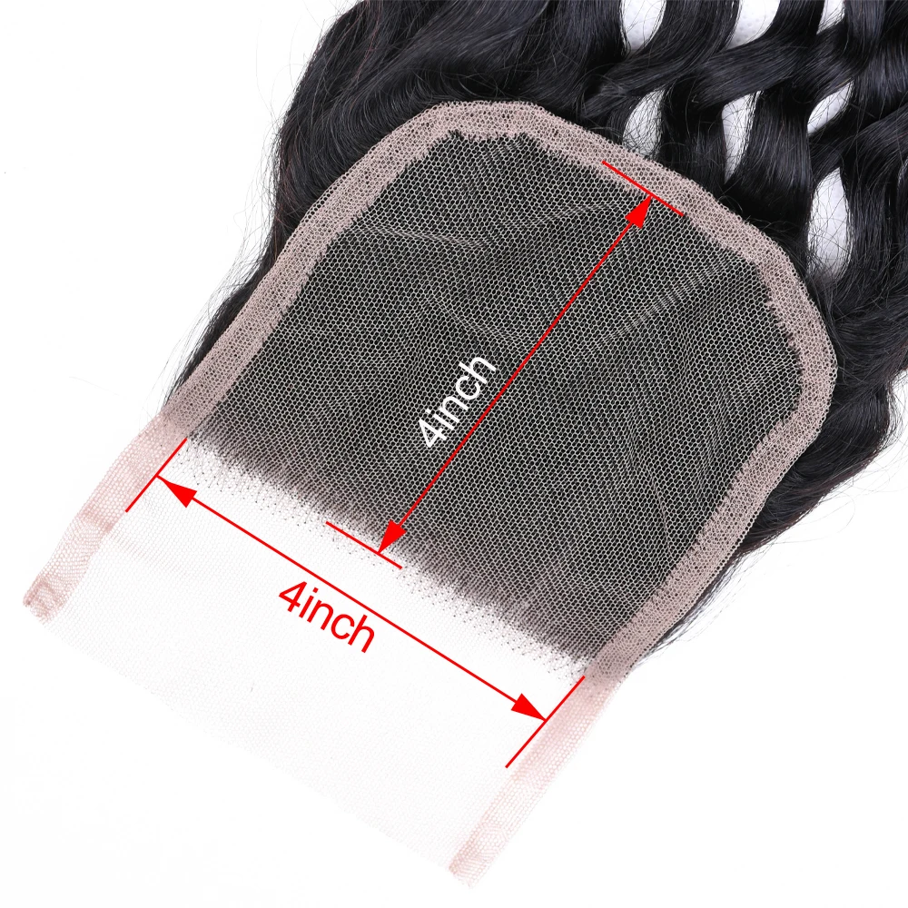 Застежка из человеческих волос в форме водной волны 4x4, застежка из 100% человеческих волос, застежка из бразильских волнистых волос
