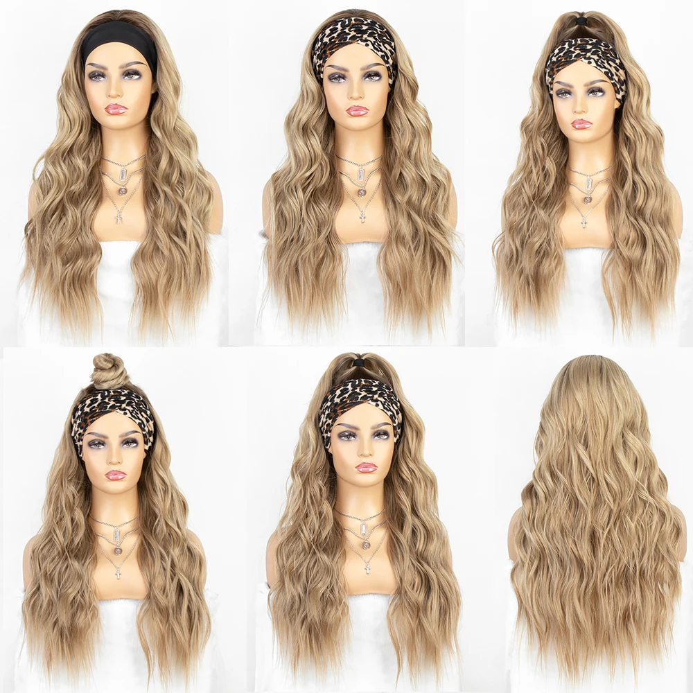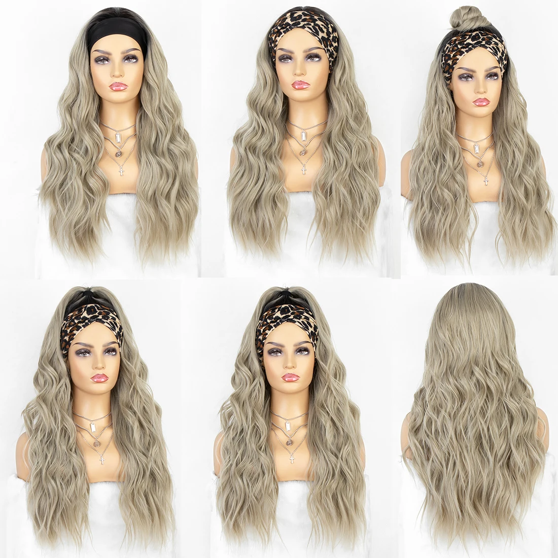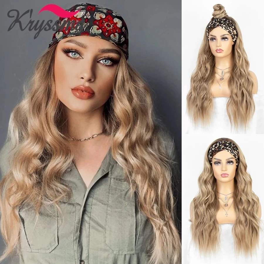 Kryssma длинные волнистые волосы парик натуральный пепельный блонд головная повязка синтетические парики Омбре волнистый парик с головной повязкой для женщин термостойкие волосы
