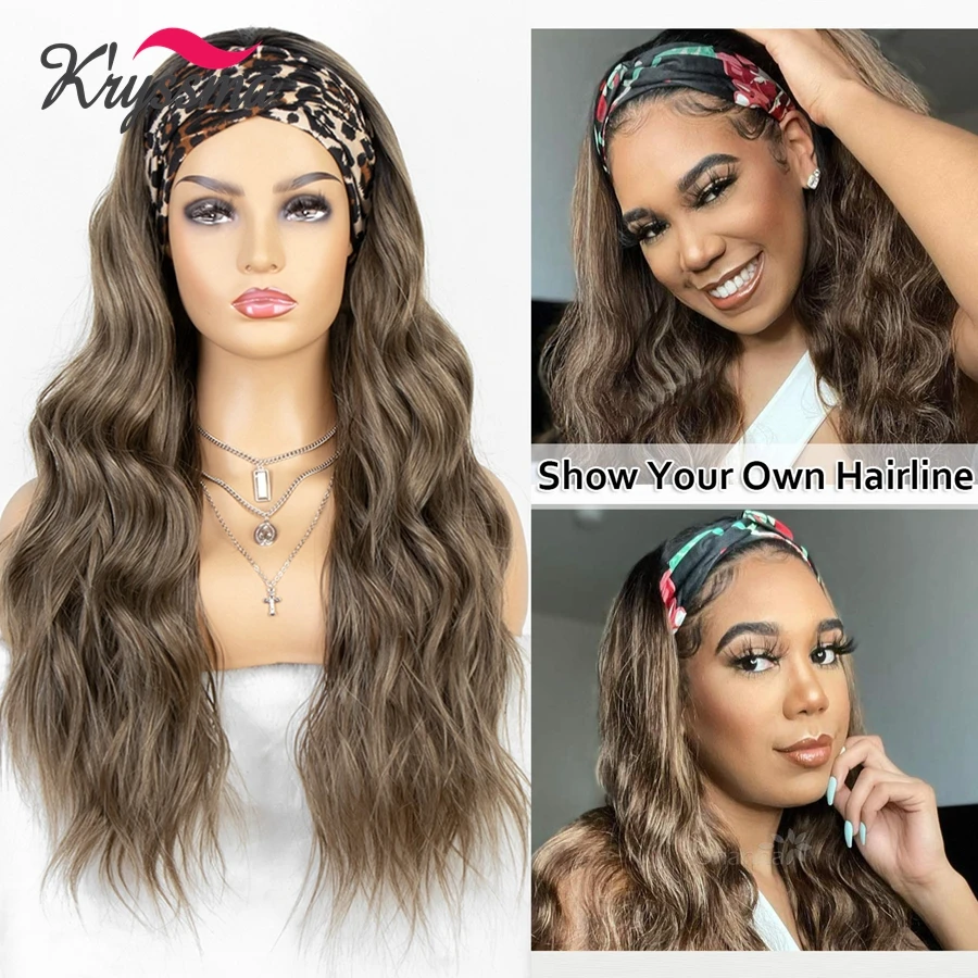 Длинная волнистая повязка на голову Kryssma, синтетические парики д...