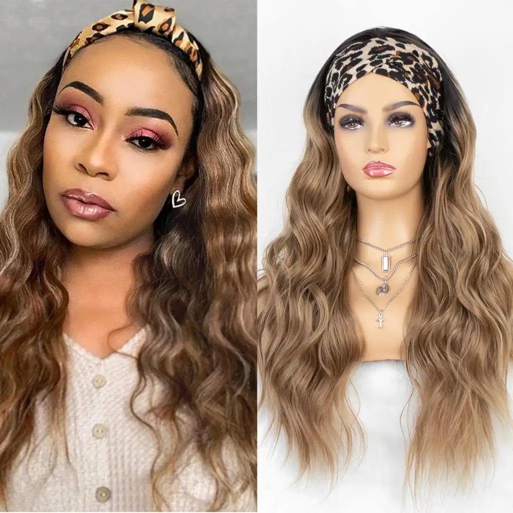 Парик с головной повязкой Длинные Синтетические вьющиеся парики для...