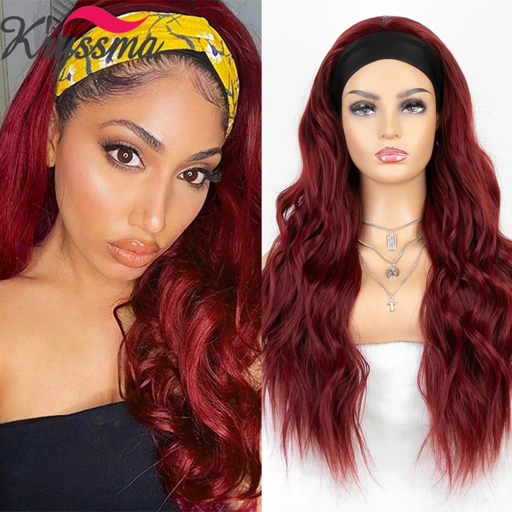 Парик с красной головной повязкой Kryssma для чернокожих женщин, синтетический детский синий волнистый парик с головной повязкой, блонд, длинный парик с Омбре, натуральный дешевый