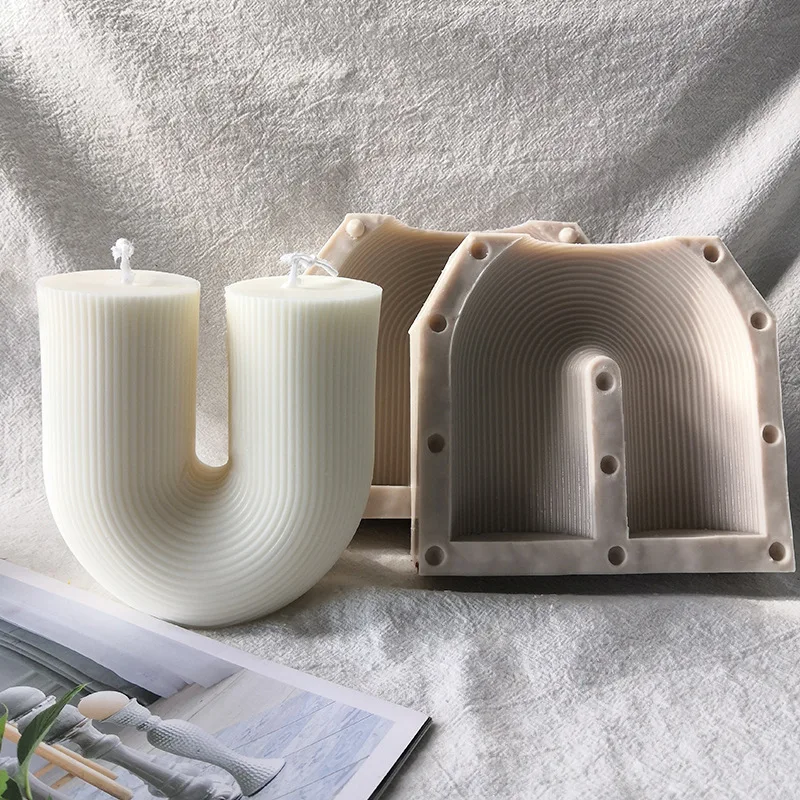 Большая U-образная силиконовая форма в виде свечи для украшения рабочего стола ручной работы, силиконовая форма в виде свечи для ароматерапии из гипса и эпоксидной смолы