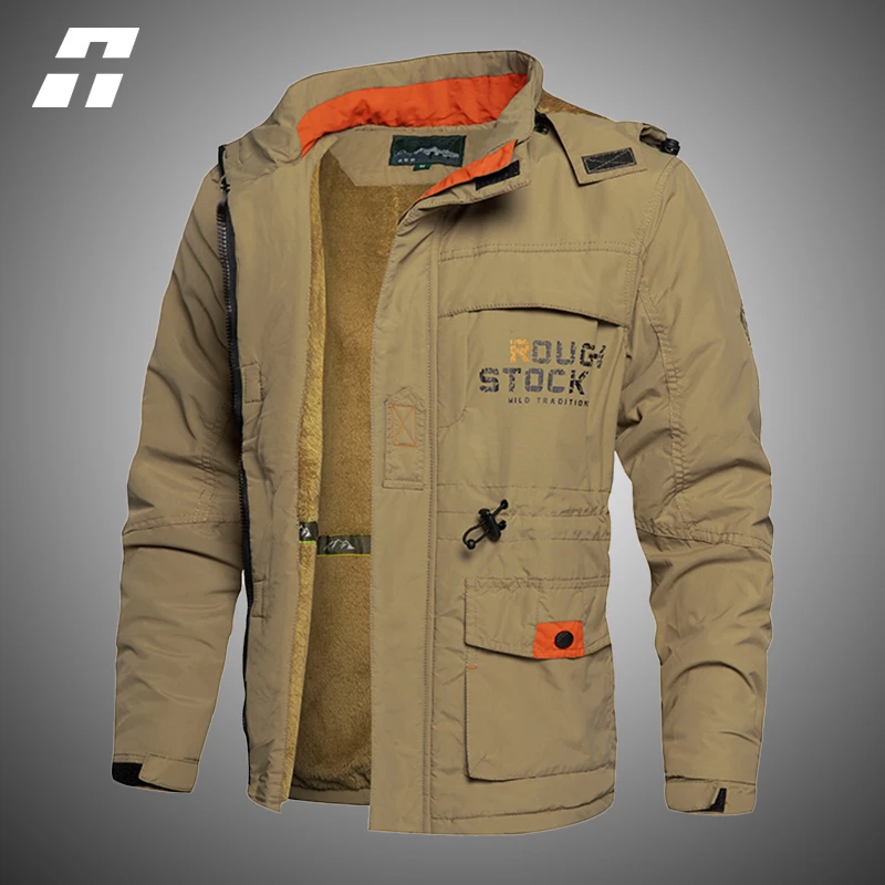 Куртка-пилот Мужская зимняя, на флисе, с капюшоном, размеры до 5XL