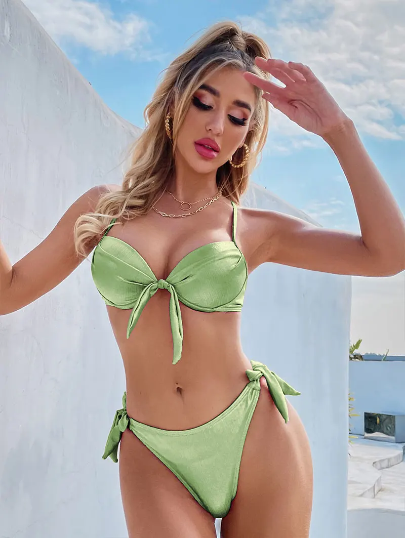 Однотонные бикини, сексуальный купальный костюм на шнуровке, женски...
