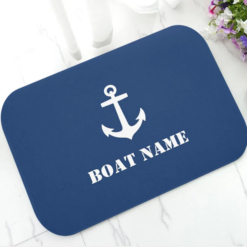 Шикарный морской якорь, лодка, темно-синие полосы, персонализированный дверной коврик, современный, под заказ, ваша лодка, название, резиновый дверной коврик, ковер, ковер, Декор
