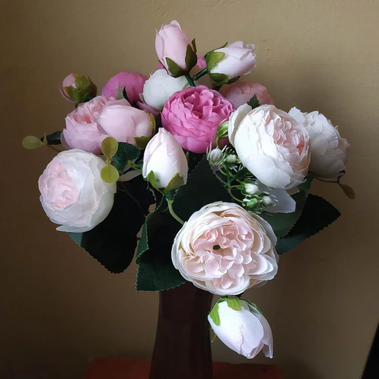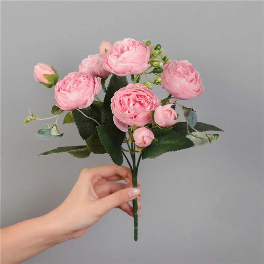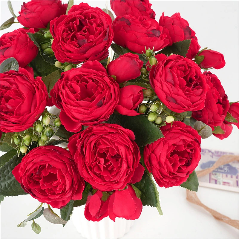 Искусственные розы 30 см, искусственные цветы, Дешевые новогодние и рождественские украшения, ваза для дома, Свадебный букет невесты в помещении