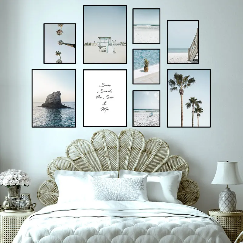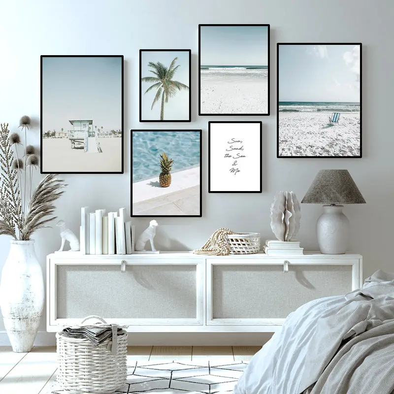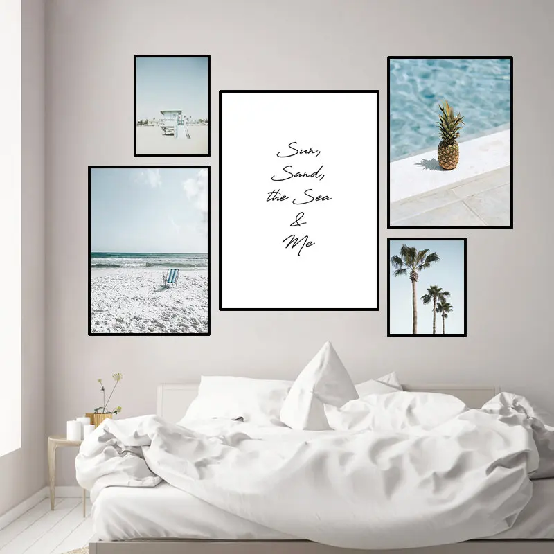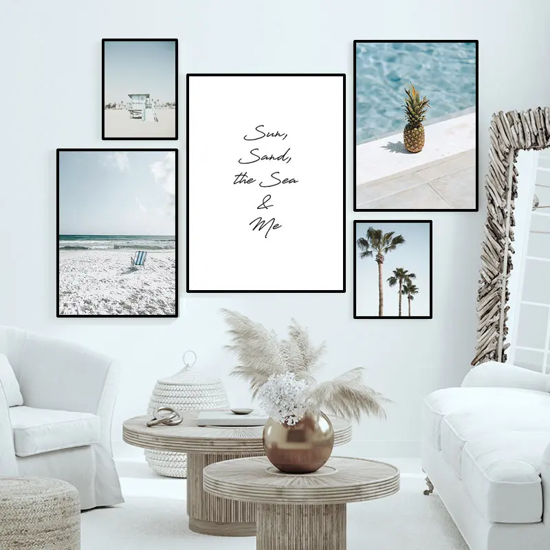 Пейзаж в виде ананаса, Картина на холсте, красивый постер на пляж, Тропическое дерево, украшение комнаты, картина, морская волна, Настенный декор FJ021