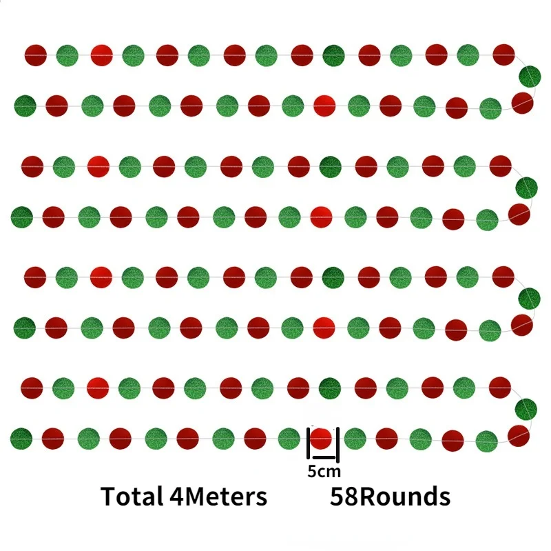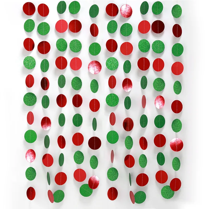 4 м зеленые красные блестящие круглые точки для рождевечерние, Настенный декор, ленточный флаг, баннер, Рождественская елка, украшение на день рождения