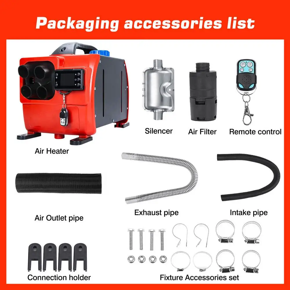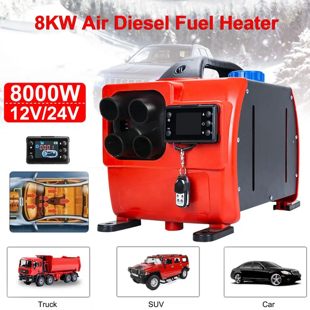 8KW 12V 24V Авто Дизельный подогреватель воздуха автомобиля с 4 отверстиями дизель стояночный отопитель ЖК-дисплей переключатель Дисплей все в одном промышленный тепловентилятор для автомобилей грузовых автомобилейТочки пули:1. Быстрый нагрев: наш Дизельный подогреватель воздуха может быть предварительно нагревается с помощью пульта дистанционного управления, который может регулировать объем масла, температуру и скорость ветра, в дополнение к исключению мороза на окнах. Он имеет мощность 8 кВт. Он может нагреваться очень быстро и очень удобен в использовании.2. Простая установка: большинство аксессуаров были установлены для Дизельный подогреватель воздуха Интегрированная машина, и полный комплект установки предоставляется. Пользователю нужно только установить его и использовать.3. Простота в эксплуатации: Динамический ЖК-дисплей четко показывает состояние работы машины. Топливо, электричество и температура могут быть установлены произвольно. Если вы сомневаетесь, пожалуйста, обратитесь к инструкции по эксплуатации динамического ЖК-дисплея на картинке.4. Широко используется: воздушный дизельный Обогреватель используется для грузовых автомобилей, кораблей, прицепов, кемперов, автофургонов и всех других дизельных транспортных средств. Он также подходит для использования в помещениях, таких как дома, склады, фабрики, офисы и т. д.5. Послепродажное обслуживание: Мы предоставляем высококачественные продукты и услуги. Если у вас есть какие-либо вопросы, вы можете связаться с нами, и мы предоставим вам различные решения на выбор.Описание:Наш Дизельный подогреватель воздуха можно подогреть с помощью пульта дистанционного управления, который может регулировать объем масла, температуру и скорость ветра, в дополнение к исключению мороза на окнах. Он имеет мощность 8 кВт. Он может нагреваться очень быстро и очень удобен в использовании.Спецификация:Название продукта: воздушный Дизельный НагревательМатериал: металл + пластикЦвет: красный и черныйНапряжение: 12 В/24 В (опционально)Мощность: 8000 ВтТопливо: ДизельПолный коэффициент сгорания: 100%Потребление: 0,18-0,48 л/чЭффективное расстояние дистанционного управления: 10 мРазмеры: 45 × 25 × 26,5 см (17,7 × 9,8 × 10,4 дюйма)Рабочая температура: -40 ℃ ~ 80 ℃Упаковочный лист:1 хост воздушного нагревателя1x впускная труба1 Воздушная выпускная труба1x выхлопная труба1x воздушный фильтр1 глушитель1x Шнур Питания1x Монтажный зажим и набор винтовых аксессуаров